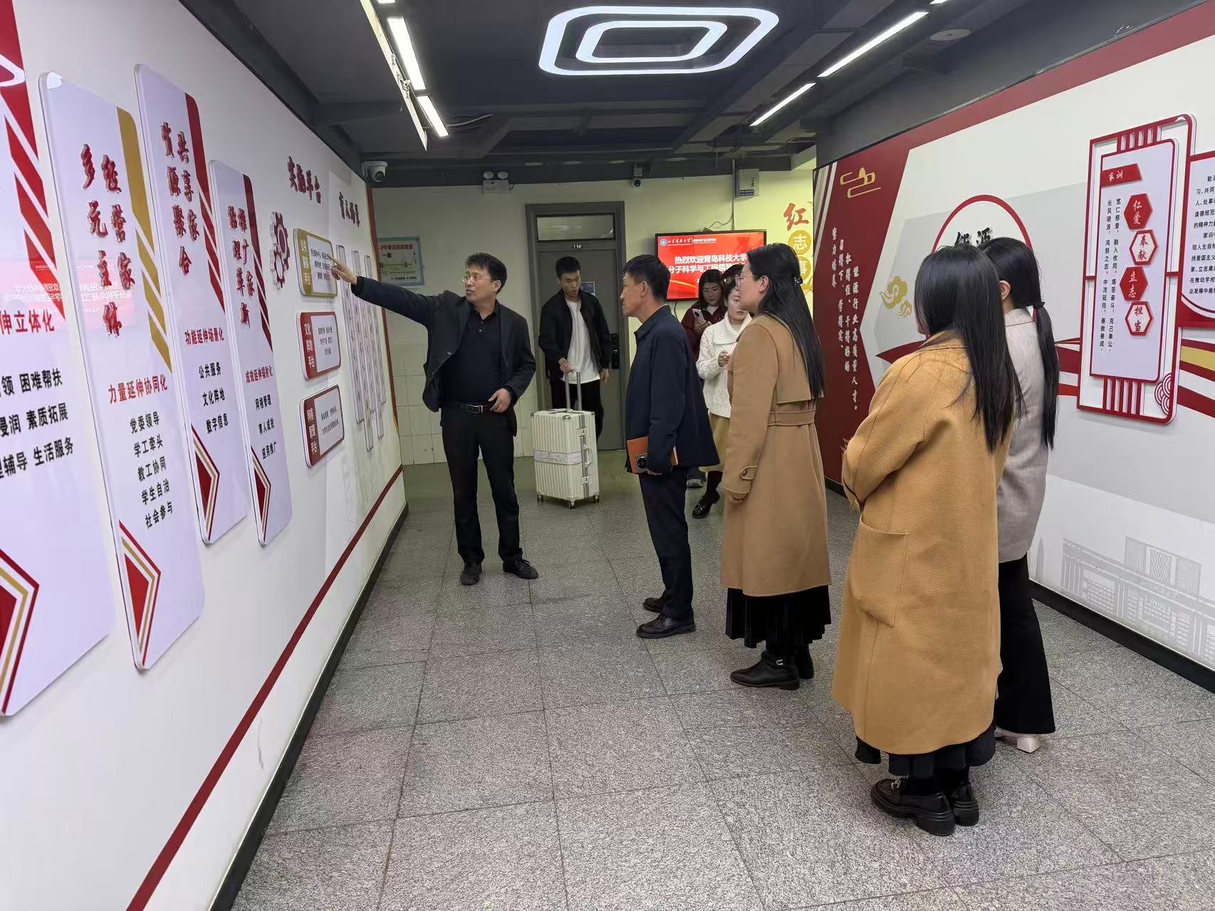 交流期间,周尚涛陪同贾明明一行实地调研参观一站式学生社区嘉源驿站,详细阐释了驿站“家”文化的核心理念与建设成效。双方以问题为导向、聚焦协同创新,进一步锚定工作方向、明晰工作路径,凝聚育人共识。